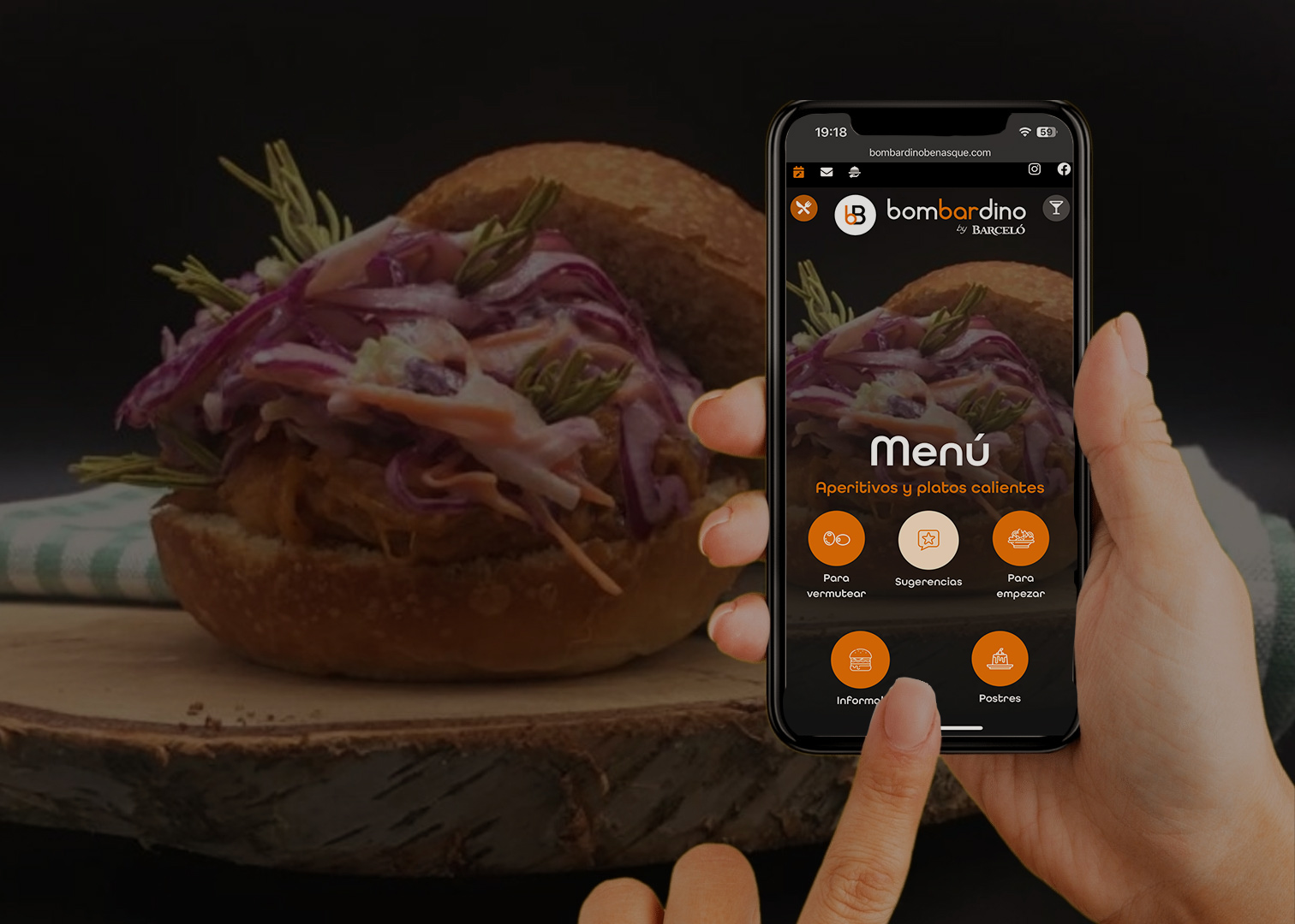 Crear una identidad de marca coherente y una web que funcionara como carta digital del gastrobar, accesible desde QR, mostrando a la vez la experiencia gastronómica de Bombardino.